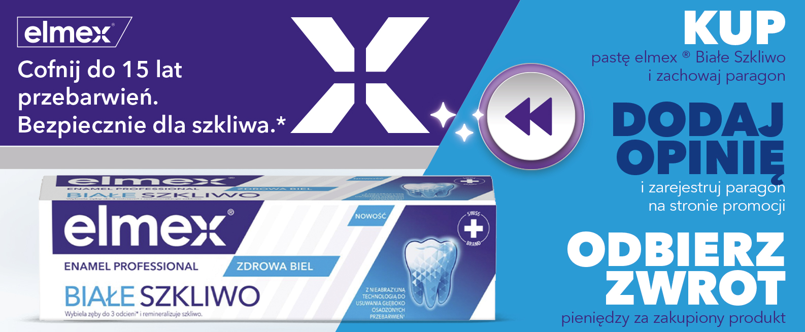 Aby wziąć w niej udział kup pastę elmex® Białe Szkliwo i zachowaj paragon. Wejdź na bialeszkliwo.wygrajusmiech.pl zarejestruj paragon, zostaw opinię o produkcie na stronie rossmann.pl lub w formularzu na stronie promocji i odbierz zwrot za zakupiony produkt.